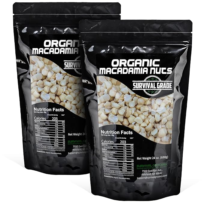 Survival Grocery® Organic Macadamia Nuts – Keto-Friendly Healthy Fats & Plant Protein, Oxygen- & Light-Barrier Packaging + O₂ & Moisture Packs, (Single or Multi-Pack Savings) (48 oz./2 Bags)