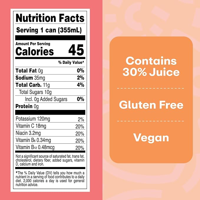 - Naturally Sourced Energy – Each can delivers 80 mg of caffeine from green and black tea, paired with 30% juice from a vibrant blend of fruits and vegetables. Lightly sparkling and designed for steady and balanced energy — any time you need it.