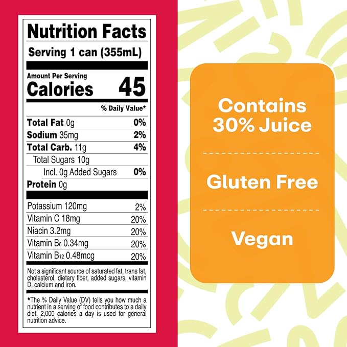 - Naturally Sourced Energy – Each can delivers 80 mg of caffeine from green and black tea, paired with 30% juice from a vibrant blend of fruits and vegetables. Lightly sparkling and designed for steady and balanced energy — any time you need it.