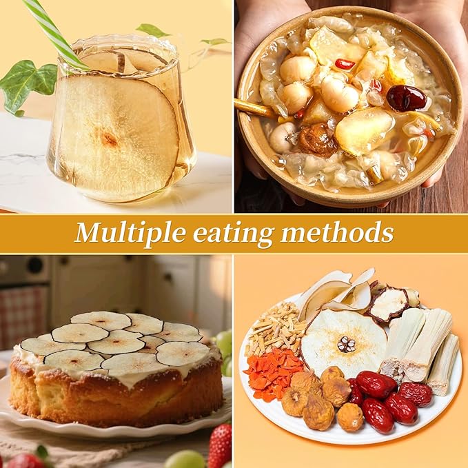 - 100% natural:Our dehydrated pear slices are hand picked by our farmers, using the middle pieces of fresh and juicy pears without adding sugar and other additives.Each sliced pear preserves its rich flavor by a natural drying process, rest assured to consume.