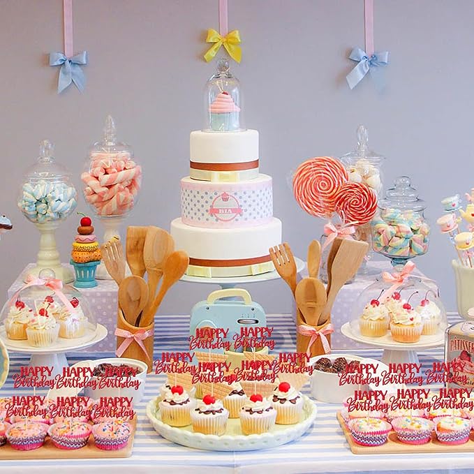 30 PCS Happy Birthday Cupcake Toppers Glitter Happy Birthday Cupcake Picks for Celebrating Birthday Anniversary Theme Party Cake Decorations Supplies Red
