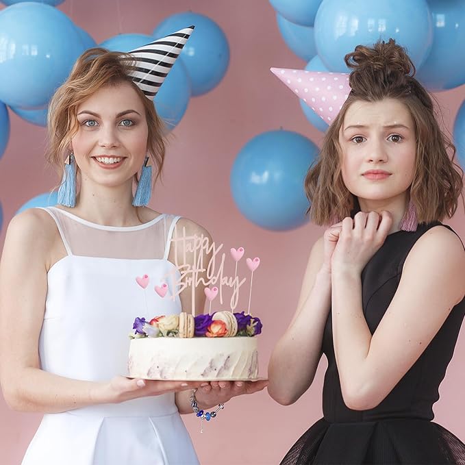 ZHENGYE Pink Happy Birthday Cake Topper Sign And 5 Pink Love Cake Toppers Cake Topper Decoration For Cake Birthday Decorations