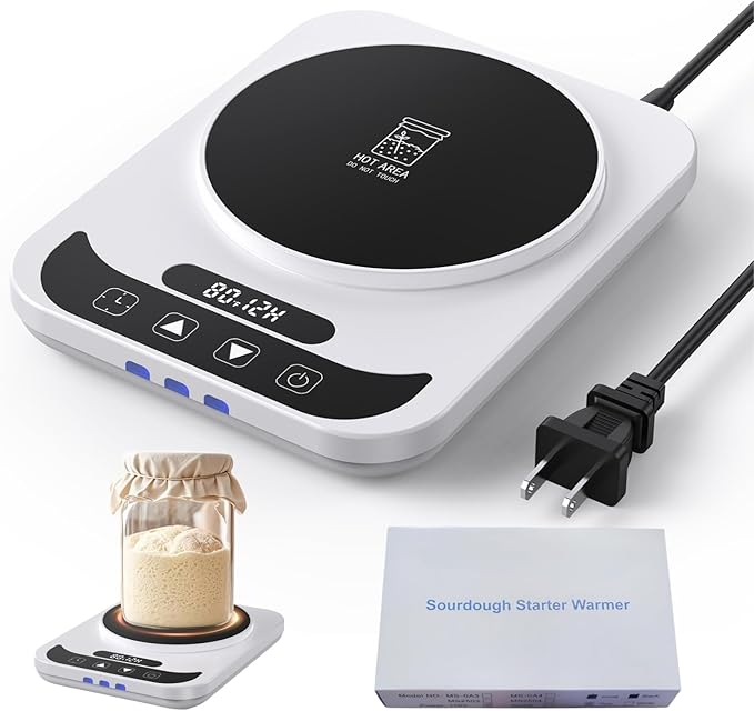 Sourdough Starter Warmer Mat - 12H Timer & Precise 1°F Thermostat (70-100°F) - Auto On/Off - Fits 40oz Jars for Home Baking (White)