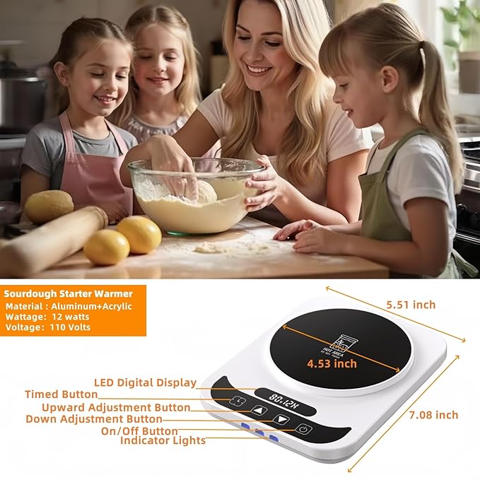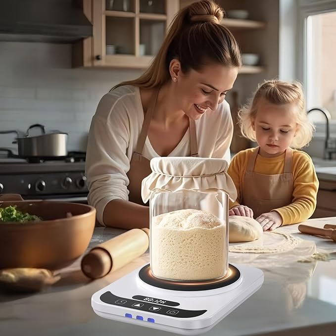- Multi-Functional & Compact:Beyond sourdough, use it to melt chocolate, proof yeast breads, or keep sauces at ideal temperatures. Its slim design (7.08×5.51×1.18 inches) fits seamlessly in small kitchens, with a non-slip surface to secure containers during use