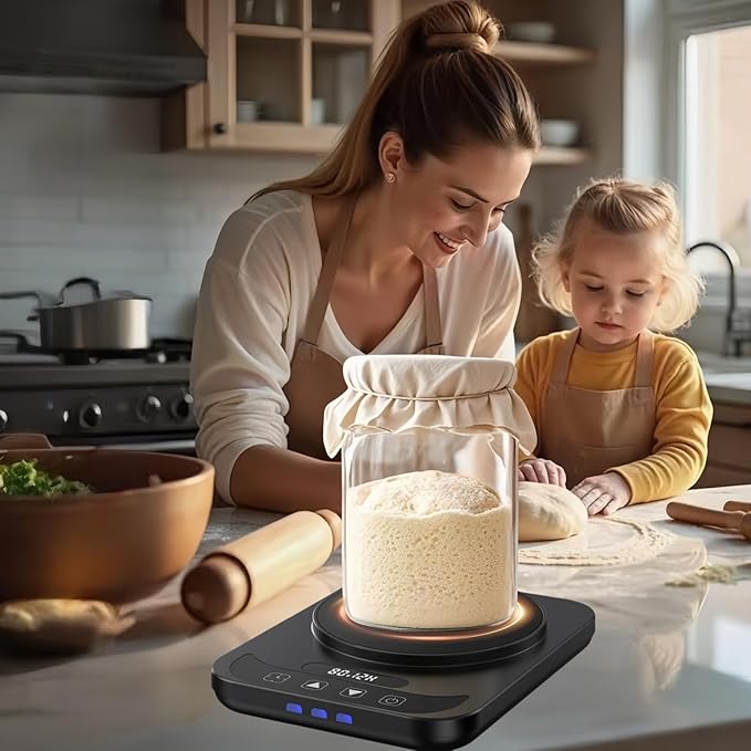 - Even Heating for Faster Dough Proofing : Equipped with an aerospace-grade aluminum heating layer, it transfers heat efficiently to the base of dough containers, achieving faster fermentation than room temperature conditions. Edge-to-edge temperature consistency works flawlessly with glass jars, ceramic jars, and other proofing vessels, ensuring uniform fermentation across diverse container types