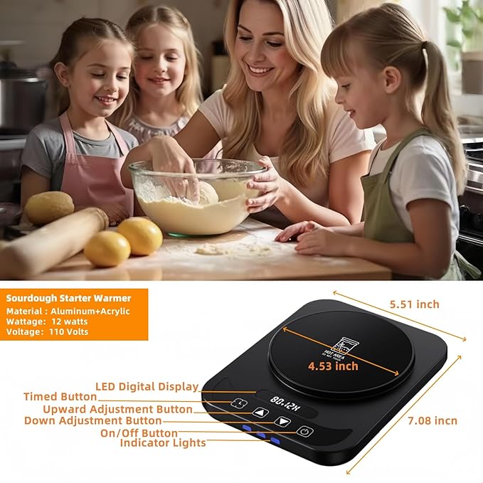 - Energy-Saving & Yeast-Friendly Design : Consumes only 12W to deliver gentle, consistent warmth. Quiet operation without disturbing daily life. The sealed structure minimizes heat loss, making it ideal for daily sourdough maintenance—affordable for overnight use without worrying about electricity costs