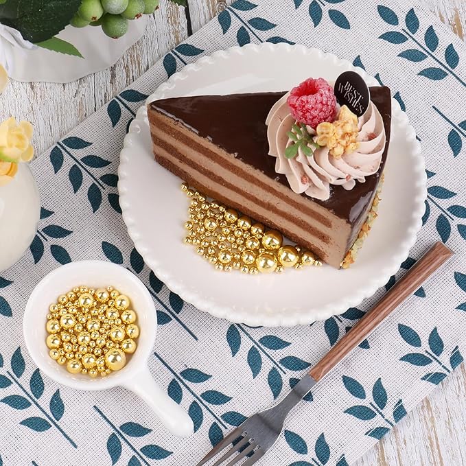 - Elegant Metallic Colors: Includes black, white, silver, and gold sugar pearls, plus two unique blends—gold & white hearts, and silver & black pearls—for a striking, high-end look on any dessert