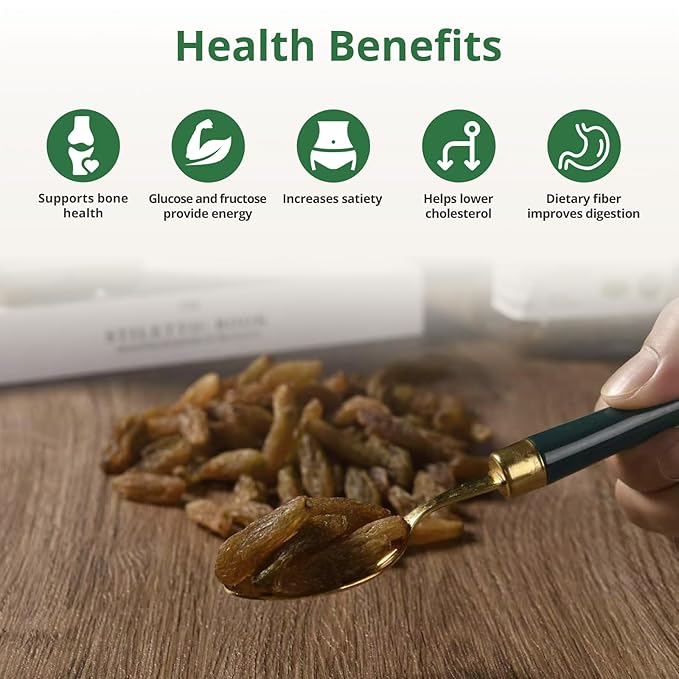 - Smart Snacking for All Ages: For kids, dried raisins provide a healthy alternative to chips or candy, rich in iron and calcium for growth and focus; For adults, resveratrol and dietary fiber aid heart health, digestion, and fatigue reduction; For Seniors, potassium and magnesium support blood pressure regulation, while natural sugars provide energy without spiking glucose levels