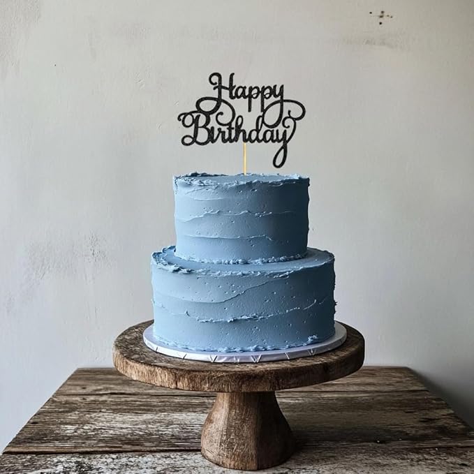 1 PCS Happy Birthday Cake Topper Glitter Black Happy Birthday Decorations for Celebrating Anniversary Party Cake Decorations