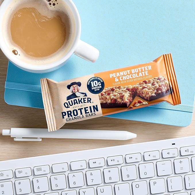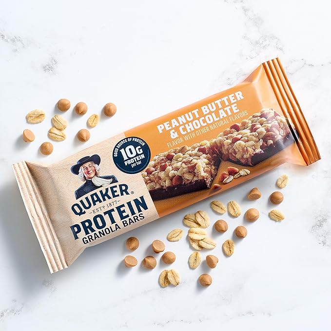- Includes 20 (1.41 oz) Quaker Protein Granola Bars with 10g Protein: 10 Peanut Butter & Chocolate and 10 Cookies & Cream