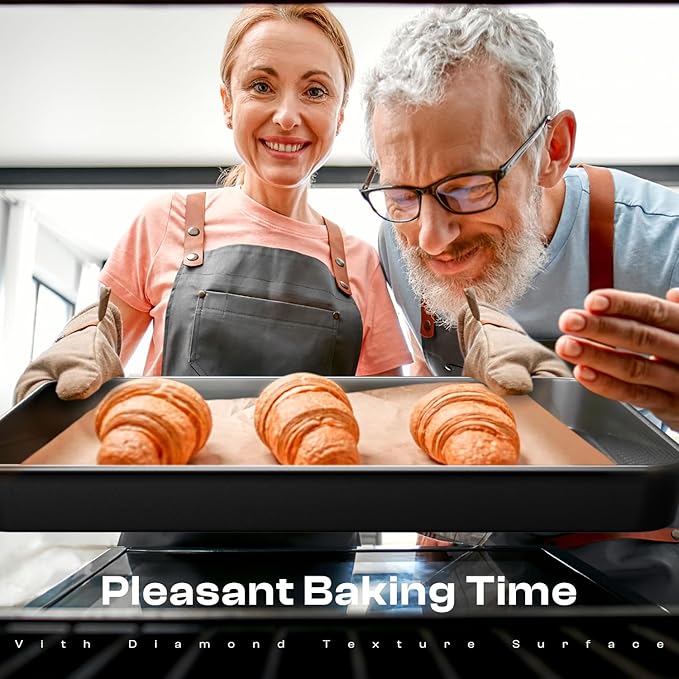 - Carbon Steel Construction:Crafted from 57% thickened carbon steel for lasting durability, this baking pan set is PTFE, PFAS, and PFOA free. It resists warping at temperatures up to 428°F, ensuring perfect baking results every time