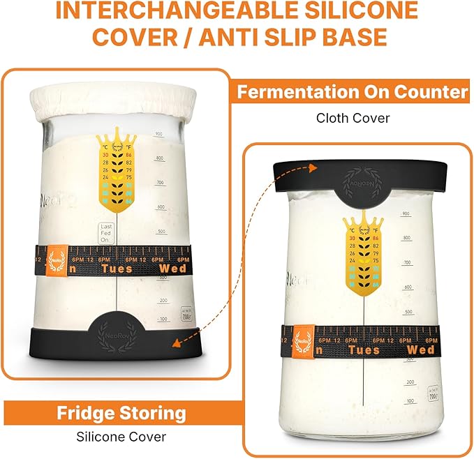 - 【Functional Silicone Lid & Spatula Included】:Our Multi-Use Silicone Lid Provides A Tight Seal For Cold Storage And Doubles As A Non-Slip Base During Fermentation. Paired With A Flexible, Heat-Resistant Long-Handle Silicone Spatula, This Set Ensures A Mess-Free Experience. The Spatula Allows You To Stir Thoroughly, Reach Deep Into The Jar, And Scrape Down Sides Easily—Keeping Your Starter Well-Mixed And Your Jar Clean. These Accessories Make Your Daily Feeding Routine Smoother, Quicker, And More Hygienic