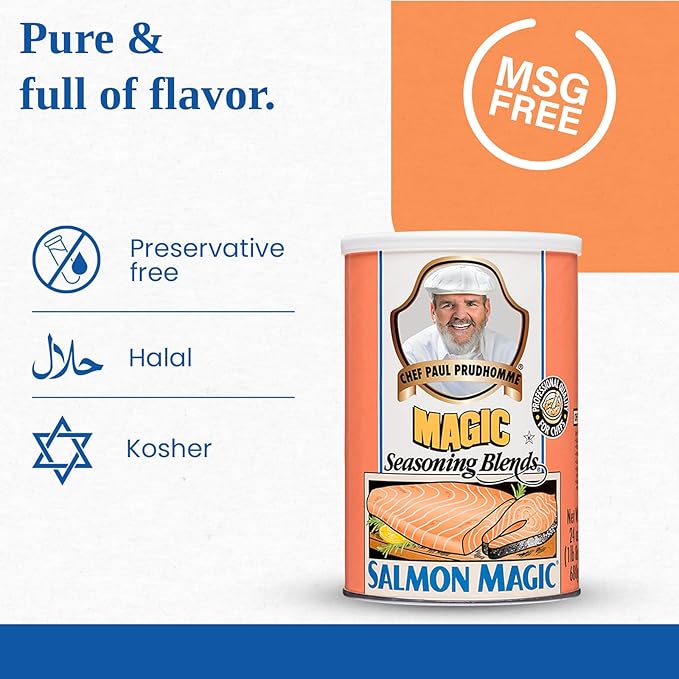 Chef Paul Magic Seasonings Blends Salmon Magic | Salmon Seasoning with Herbs & Spices | Seafood Seasoning for Cooking | Fish Seasoning Blend | Kosher & Halal Certified | 24 oz (Pack of 2)