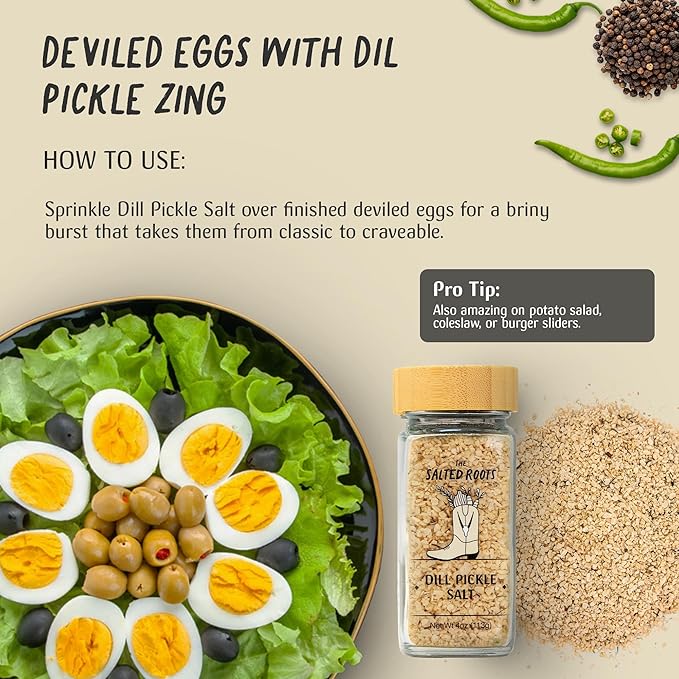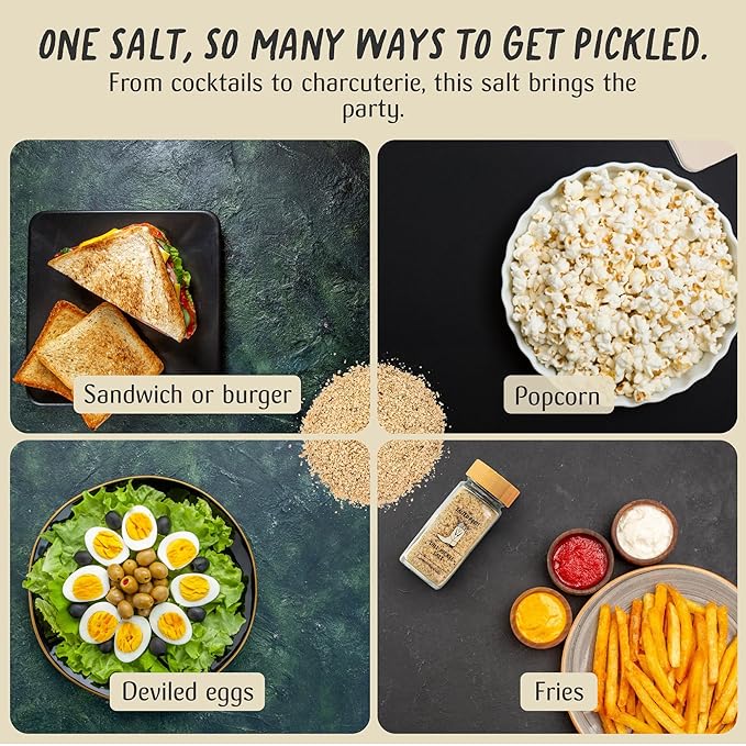 - BOLD DILL PICKLE FLAVOR: A tangy punch of vinegar, fresh dill, and pickling spice infused with vodka delivers a mouthwatering twist. This dill pickle salt is savory, bright, and brimming with personality.