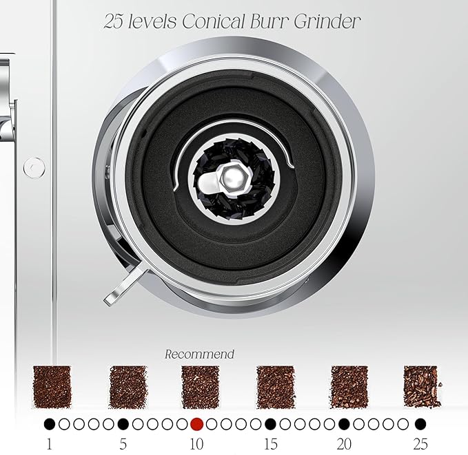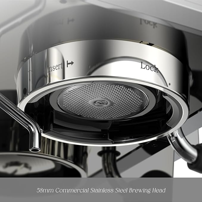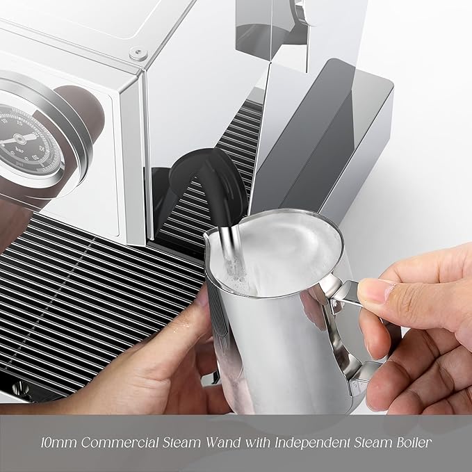 Espresso Machine with Grinder, 58mm Dual-Boiler Semi-Commercia Coffee Maker 20 Bar Professional with Milk Frother Steam Wand for Cappuccino, Barista LCD Display for Home, Stainless Steel