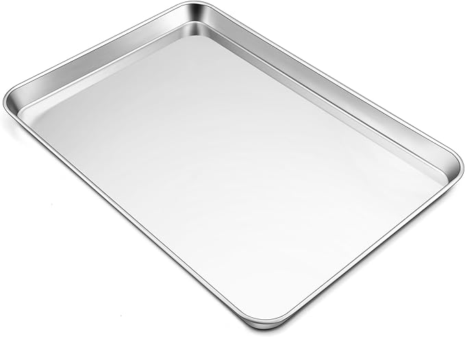 - Healthy & Non Toxic - TeamFar baking sheet is made of food grade pure stainless steel, no toxic coating, no chemical odor, no rusting, healthy and safe for daily cooking, Sturdy construction, nicely weighted and high-end baking pan built to long-last