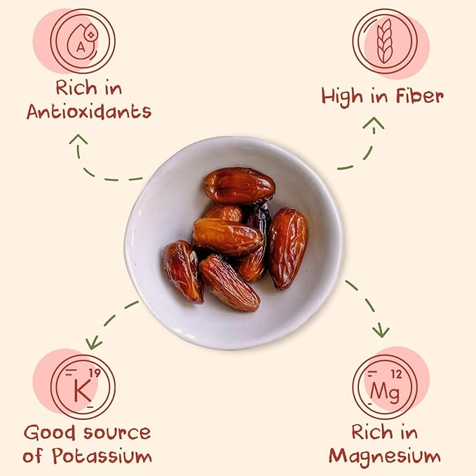 - SUPER NUTRITION: Dates are an excellent source of dietary fiber, antioxidants, potassium, calcium, iron and magnesium all of which help boost your immunity, promote healthy nervous system and regulate your metabolism. Sunny Fruit Dried Deglet Nour Dates contain no gluten, dairy, eggs, added sugars, syrups, sulphite, sulfur, or soy.