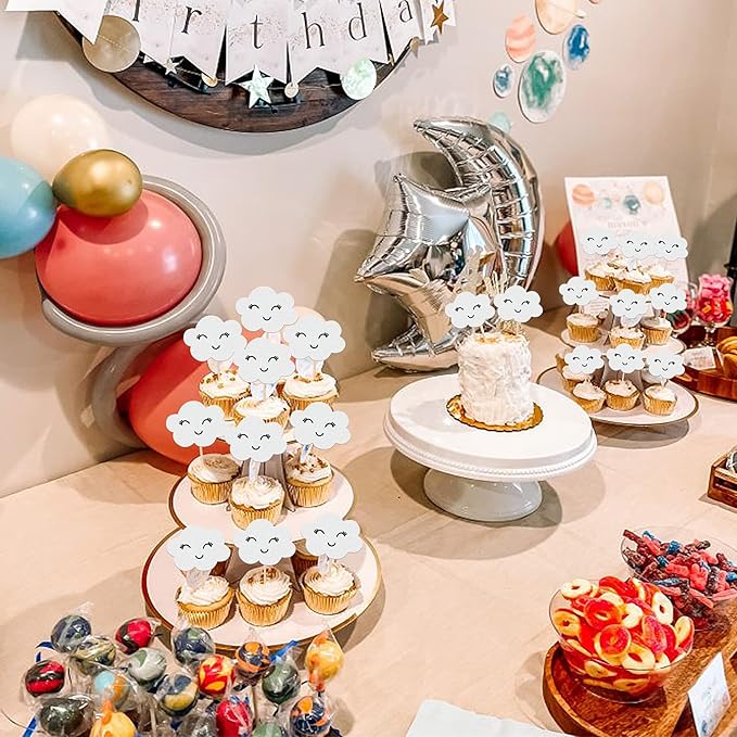 - Wide Usages ! These white cloud cupcake toppers are perfect for white cloud theme party, clouds theme party, smile theme party, on cloud 9 theme party, wedding theme party, baby shower theme party, kids birthday party cupcake decorations, they can make your cupcake more attractive and bring the fun to your party.You can also apply them for ice cream, fruits, cookies and other desserts.