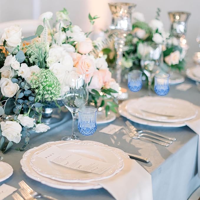 - 🍷🍷🍷Widely Used: Blue glasses are suitable for many occasions such as weddings, anniversaries, birthday parties, Joe's wedding banquets, New Year's Day, family gatherings, Christmas parties, Thanksgiving parties, Halloween parties, etc. This retro stemless wine glass and tableware set is an ideal choice for both indoor and outdoor gatherings