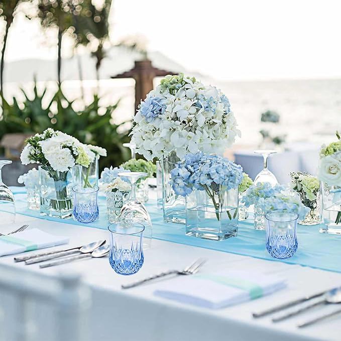 - 🍷🍷🍷Suitable Size: The exquisite plastic drinking glasses have a diameter of approximately 2.59 inches and a height of about 3.42 inches, with a capacity of 9 ounces. The mouth is smooth and won't damage your lips. Blue wine glasses are suitable for various beverages such as wine, champagne, whisky, holiday cocktails, etc. The handleless cup adds a touch of fashion to your party and leaves a deep impression on your guests
