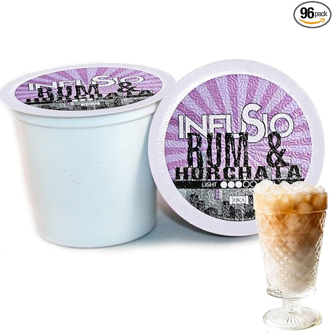 InfuSio Coffee Pods 96 Count Rum & Horchata Flavored Medium Roast Single serve Coffee pods for Keurig K Cups Brewers - InfuSio Premium Roasted Keurig 2.0 Compatible
