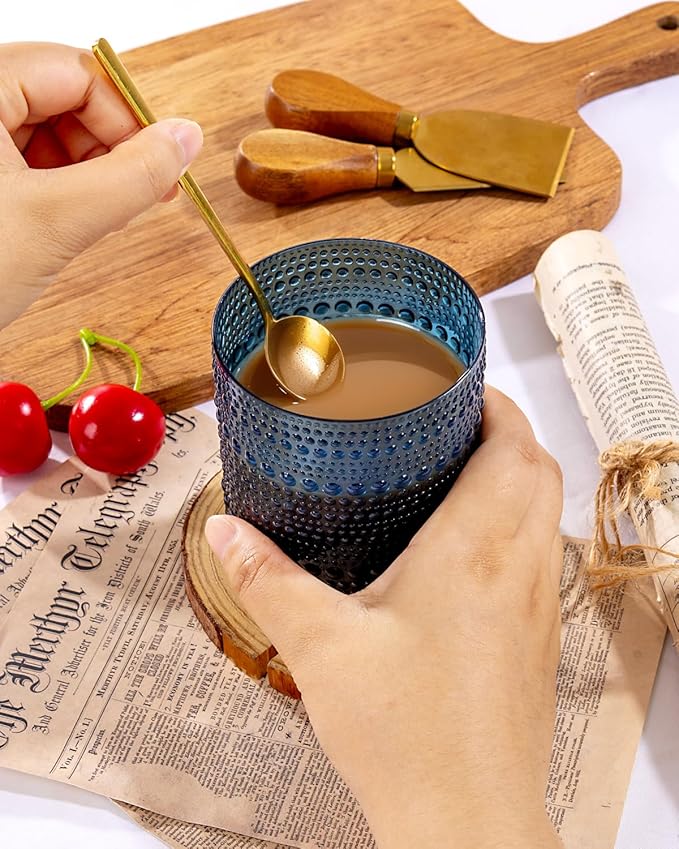 YOUBET 24PCS Plastic Drinking Glasses - 14OZ Blue Hobnail Drinkware Glasses - Vintage Glassware Textured Beaded Cups for Water, Beer, Whiskey, Juice and Various Mixed Drinks