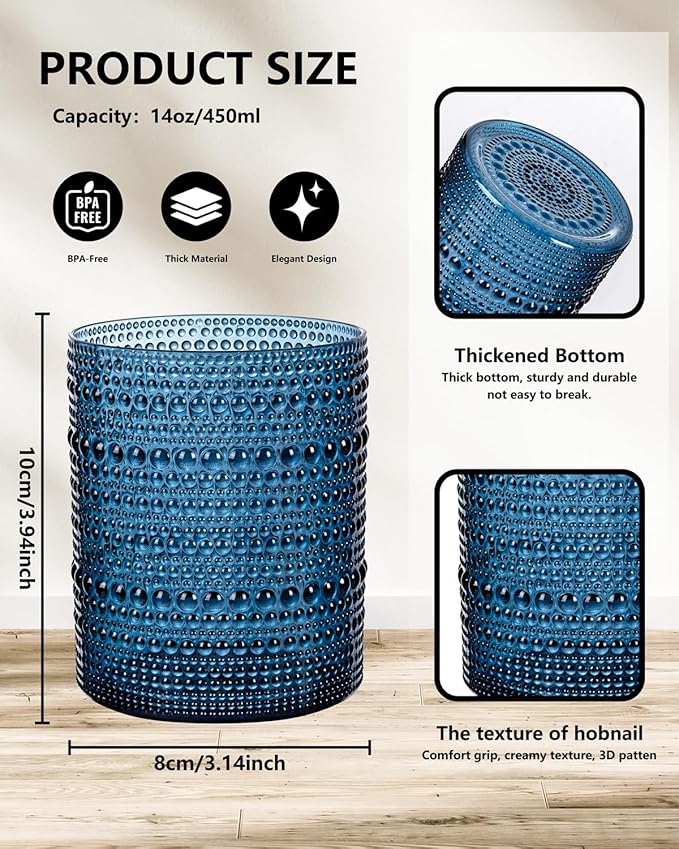 - Vintage Blue Hobnail Elegance - Elevate tablescapes with 24 sophisticated plastic hobnail drinking glasses featuring deep blue textured designs. These 14-oz Vintage Glassware pieces combine retro charm with modern durability for water, beer, or whiskey service