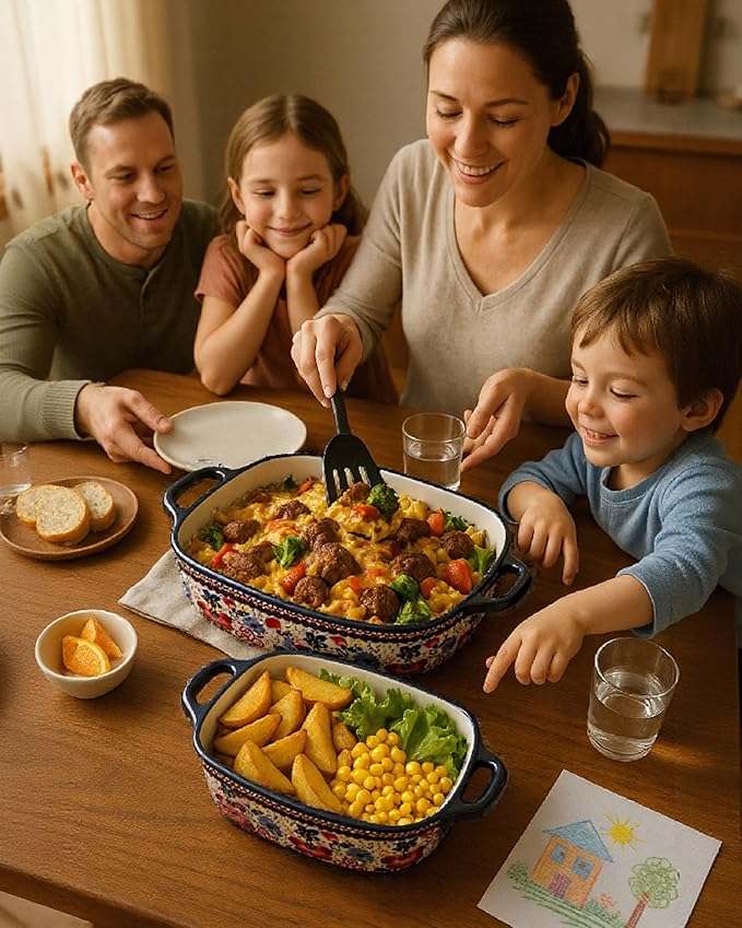 Ceramic Baking Dish Set of 2 ??Decorative Polish Pottery Style Casserole Dishes with Handles, Cute Oven-Safe Lasagna Bakeware Gift Set