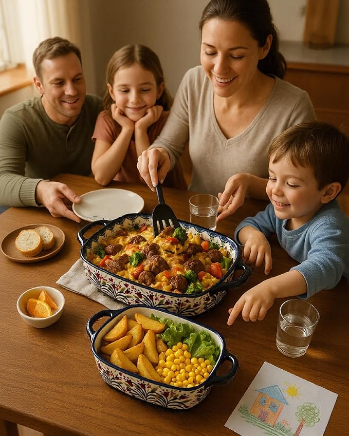 Ceramic Baking Dish Set of 2 ??Decorative Polish Pottery Style Casserole Dishes with Handles, Cute Oven-Safe Lasagna Bakeware Gift Set
