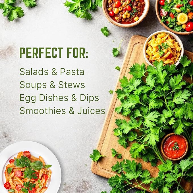 - KITCHEN STAPLE FOR EVERY CUISINE – Whether you're cooking Italian classics or global favorites, this dried italian parsley delivers subtle earthy tones that elevate soups, sauces, pastas, and marinades.