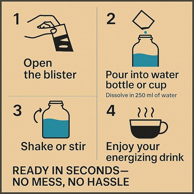- Portable Single-Serve Blisters: Stay energized anywhere with convenient single-serve packs. Tear, pour, and shake in water for instant hydration and clean energy at the gym, office, or on the go—ideal for busy lifestyles and active routines.