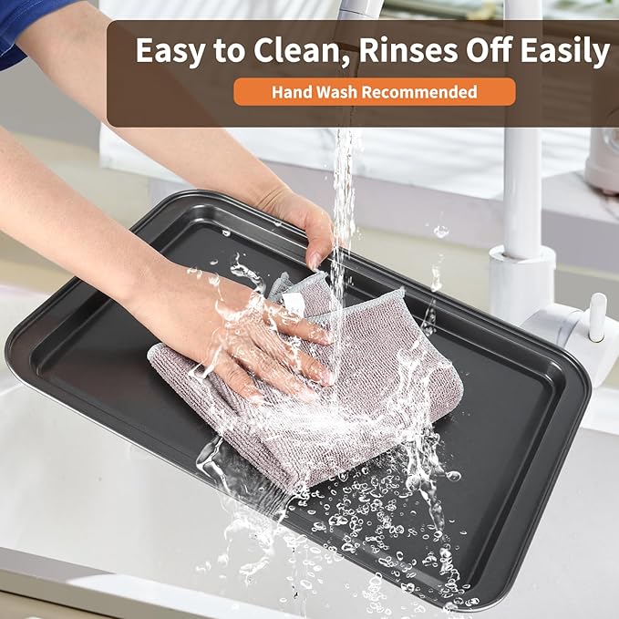 - Premium Materials & Safe: Our baking pans set is crafted from high - quality carbon steel. It's built to last and ensures even heat distribution for perfectly baked treats every time. Toxic-free nonstick, our oven pan set delivers a healthier baking experience—plus, it ensures cakes, cookies, and breads release effortlessly and clean up with ease