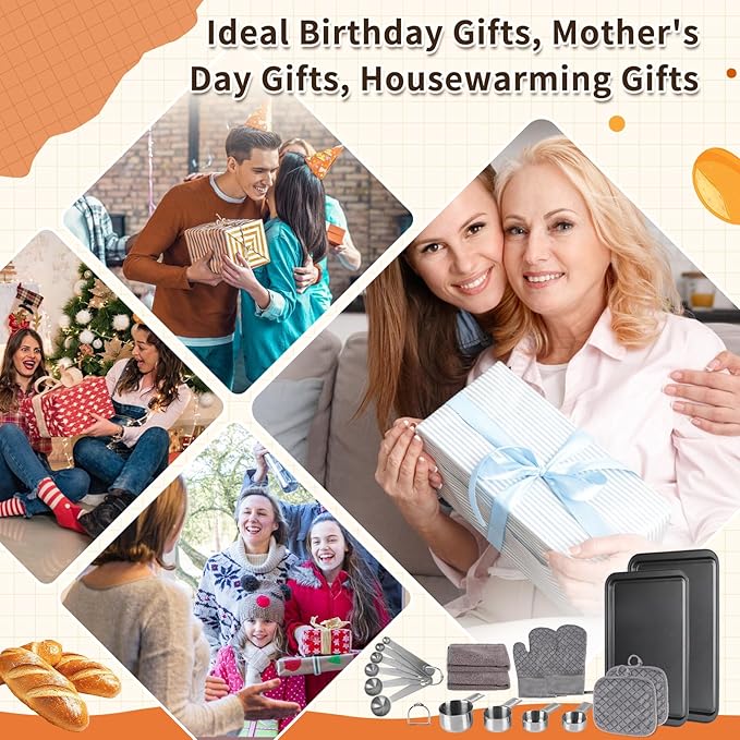 - Great Gift Choice: Our baking pan sets for cooking nonstick offering versatile options for different recipes. Designed for ease of use, this non stick bakeware sets facilitate a seamless baking process for home cooks. It’s an essential kitchen tool set for festivals, birthday party, wedding or family dinner gatherings.
