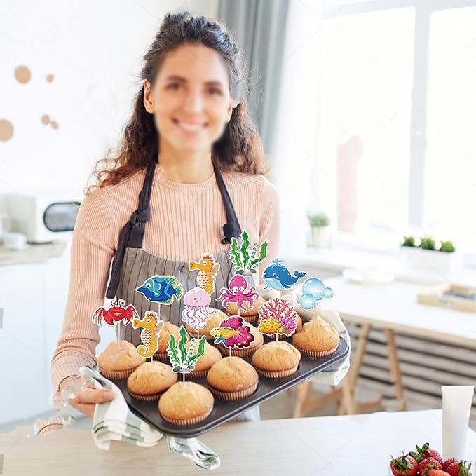 - APPLICATION:Perfect decoration for cupcakes,cookies, cakes, fruits, brownies, ice cream and more,particularly suit to use on marine animal theme cupcake toppers,ocean sea theme party,baby shower theme party,kids birthday party cupcake decorations supplies