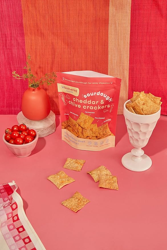 - The Magic Of Sourdough – Unbothered crackers are made with a traditional sourdough starter that breaks down gluten and adds gut-friendly probiotics. Our 24-hour fermentation process makes them easy to digest and creates a tangy, savory flavor you’ll love.