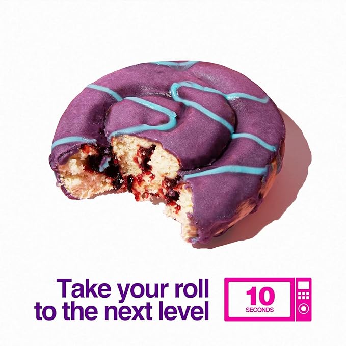 - LEGENDARY FOODS 20g PROTEIN SWEET ROLL WILD BERRY FLAVORED – Enjoy 8 individually wrapped high-protein Wild Berry rolls made with a powerhouse blend of micellar casein, whey protein isolate, and collagen peptides. Each roll packs 20 grams of protein, only 6g net carbs, 1g sugar, and zero added sugar. Microwave for 10 seconds for an indulgent, Berry explosion with a soft roll texture
