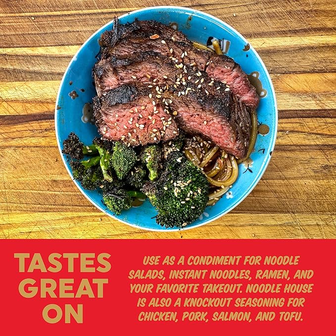 - Umami-Packed Asian Blend: Asian spices ideal as a ramen seasoning, fried rice seasoning, stir fry seasoning mix, noodle seasoning, and beef and broccoli seasoning. Noodle House seasoning will deliver a umami oomph and appealing texture to a wide range of Asian dishes. Use as a pork seasoning, fish seasoning, vegetable seasoning and tofu seasoning.