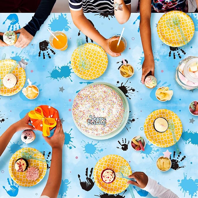 - PACKAGE INCLUDES: You will receive 3 exquisite high 5 year old themed tablecloths to bring your party an outstanding visual effect. Let the serene blue artist make your guests feel calm and enjoy the party. With sufficient quantity, you will have enough tablecloths for decoration or as spares.
