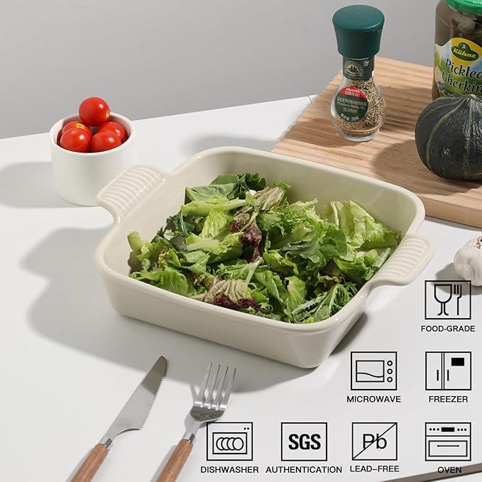 Sweejar Ceramic Baking Dish, 9 x 9 Cake Baking Pan for Brownie, Porcelain Square Bakeware with Double Handle for Casserole, Lasagna, Family Dinner (Beige)