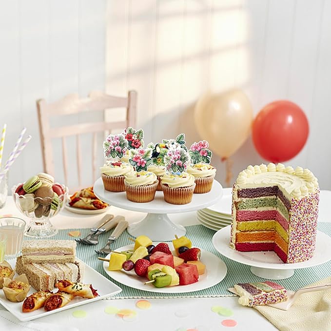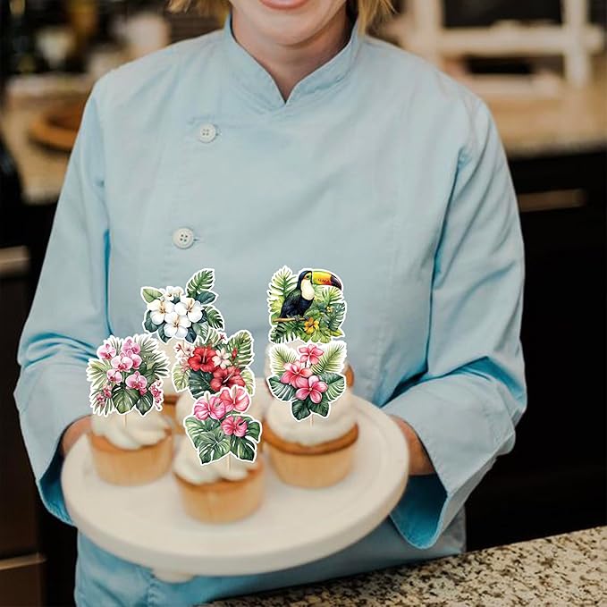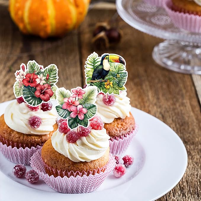 Rsstarxi 36 Pack Hawaiian Luau Flower Cupcake Toppers Hawaii Tropical Bird Cupcake Picks for Summer Bridal Engagement Baby Shower Birthday Hawaiian Luau Party Decorations Supplies