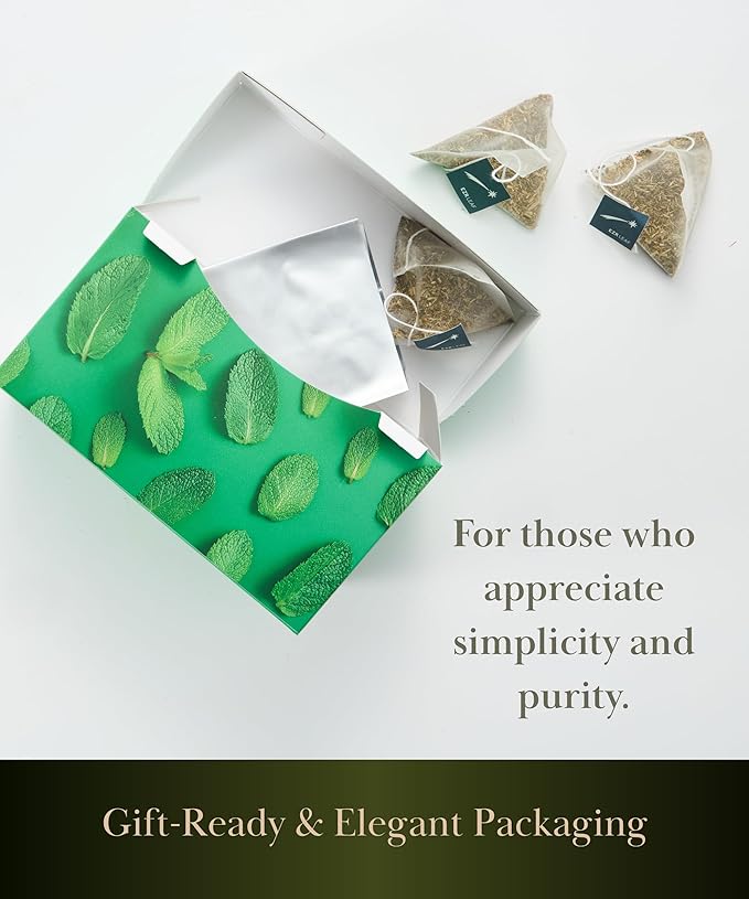 EZR Leaf Mint Herbal Tea, Caffeine Free Decaf, Pyramid Tea Bags 20 Counts 2.1 Once German Peppermint, Lemongrass, Licorice Blend for Relaxation, After-Meal, Bedtime