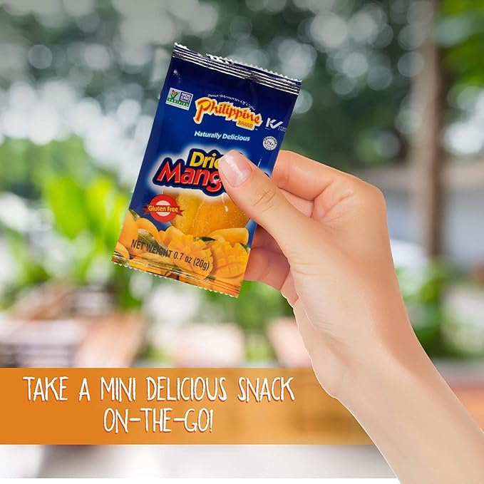 Philippine Brand Dried Mangoes Fruit Snacks (24 Pack)- All Naturally Gluten Free, Vegan, Hand-Selected Delicious Fresh Mangos from Philippines, Grab and Go Perfect for Office & School Food