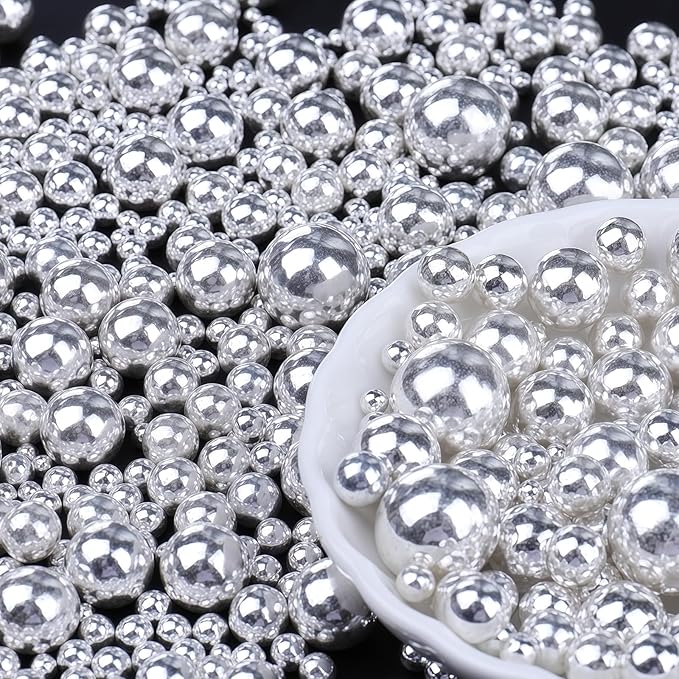 Silver Edible Pearls for Cake Decorating, 6 Sizes Mix 4.6 oz Pearl Sugar Sprinkles Baking Decoration for CupCake Cookies Ice Cream Dessert Topping