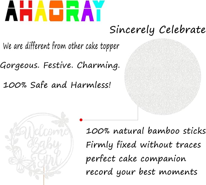 - YOUR MOST INTIMATE SERVICE: If you are not satisfied with the Welcome Baby Girl Cake Topper, please contact AHAORAY 's 24-hour online customer service, AHAORAY will give you a satisfactory answer as soon as possible