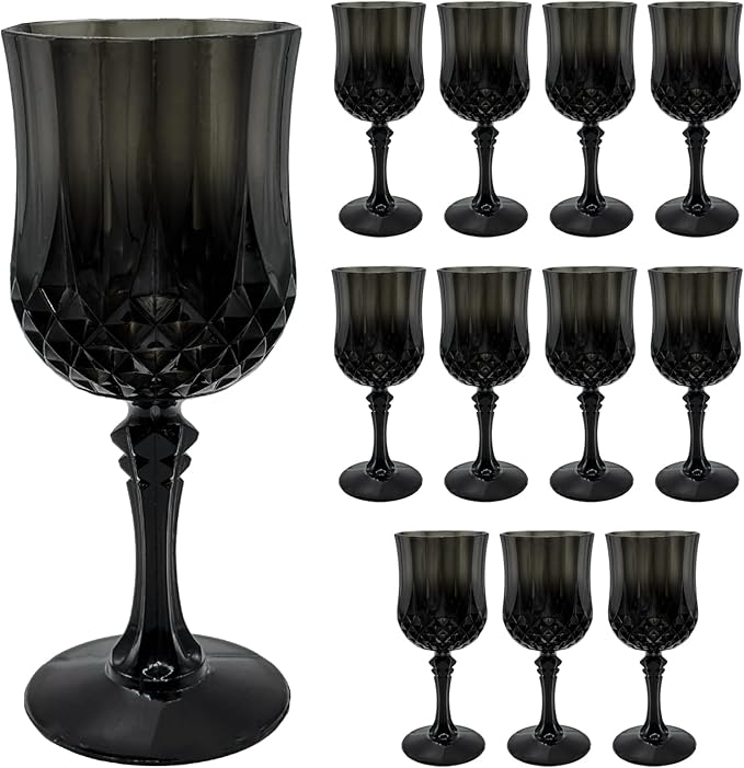12 PCS Black Plastic Wine Glasses,Cordial Glasses,Goblets,Can be Used for Weddings, Everyday Fun Parties and More!