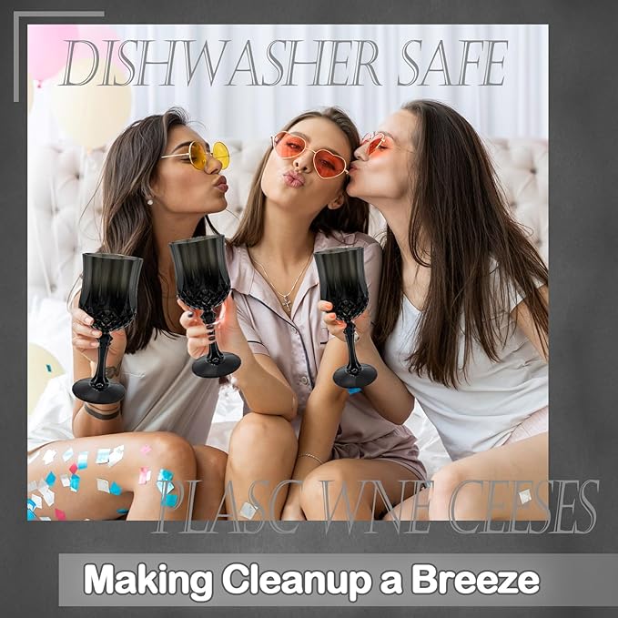 - 🍷🍷QUALITY CRAFTSMANSHIP: Our black vintage wine glasses are built by die-casting process, which makes them more sturdy, and our black color is punched into the plastic inside way! Rather than simply spray paint or smear the way to dye, so you can rest assured that our black color will not exist in the color loss of trouble, in the superimposed on the cup open design, you can rest assured that it is directly in your dishwasher to wash, better design and craftsmanship.