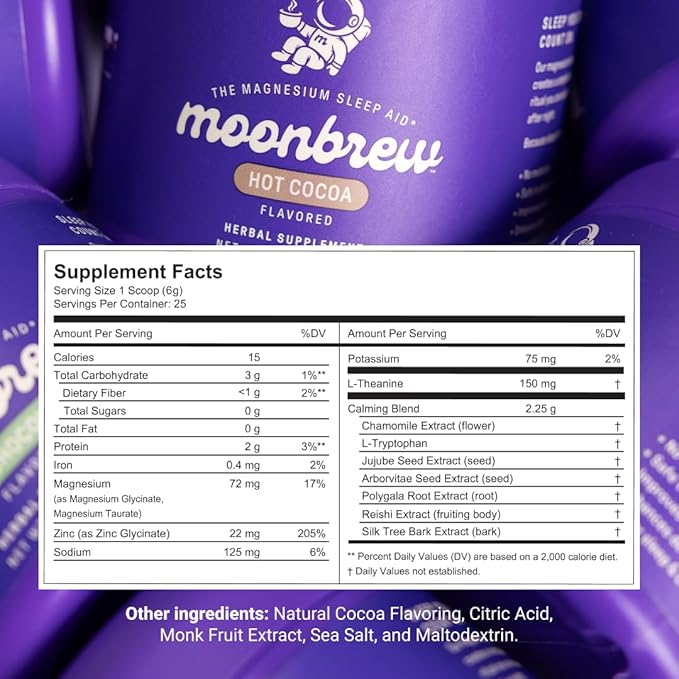 - Your New Nighttime Ritual: Unwind with MoonBrew Magnesium Hot Cocoa, a healthy, rich, velvety supplement blend designed to support deep relaxation and rest so you can fall asleep, stay asleep, and wake up feeling refreshed. 25 servings.