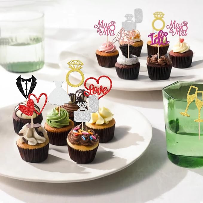 - Wide Usages ! These he asked she said yes cupcake toppers are perfect for wedding engagement theme party, he asked she said yes theme party, bridal shower theme party, miss to mrs love theme party, bachelorette theme party cupcake decorations, they can make your cupcake more attractive and bring the fun to your party.You can also apply them for ice cream, fruits, cookies and other desserts.