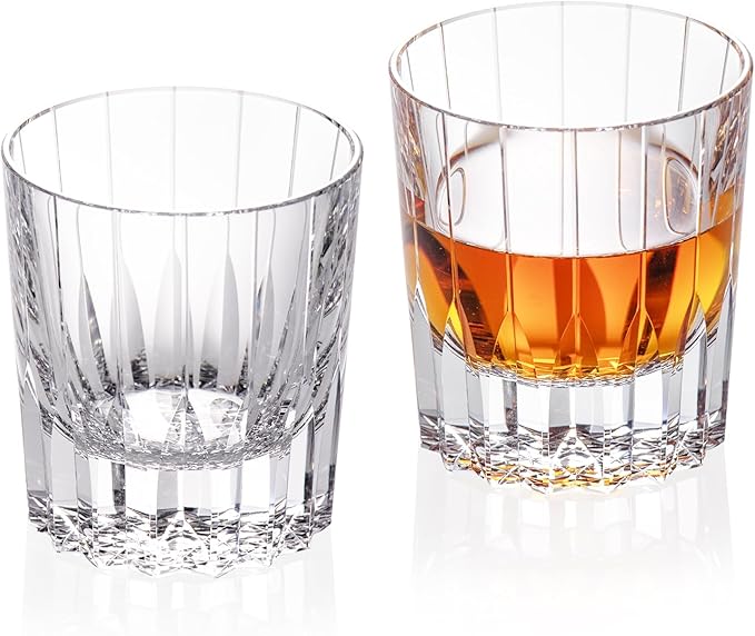 - Elegant Craftsmanship, Luxurious Touch: Elevate your whisky experience, our high-end wine glasses are meticulously handcrafted by accomplished artisans. The elaborate etching process allows them to capture and refract light in a mesmerizing way, creating a sparkle over luster effect. Every time you hold the crystal whiskey glasses, your fingertips will relish in a silky smooth texture
