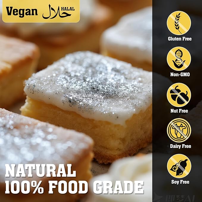 - 【Trusted Quality & Reliable Service】: Loved by customers for its brilliant shimmer and neutral taste. our edible glitter is a top-rated choice for bakers and decorators. Your satisfaction is our priority! If you have any questions with our luster dust, our team is ready to assist and typically responds within 24 hours.